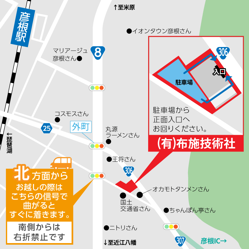 ・国道8号線の外町交差点から、彦根インター方面へ約400メートル